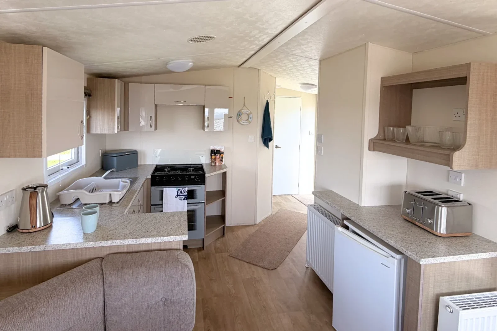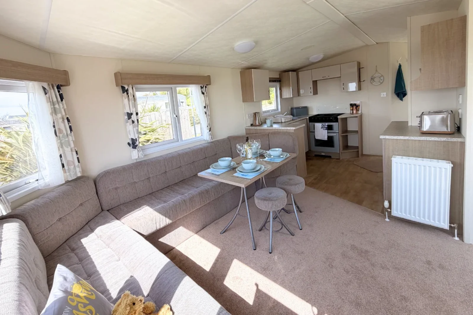 Inside, the Delta Bromley features a bright open-plan living, dining, and kitchen area designed for comfort and practicality. The lounge provides a cosy space to relax, while the dining area is ideal for family meals. The kitchen offers ample storage and workspace.