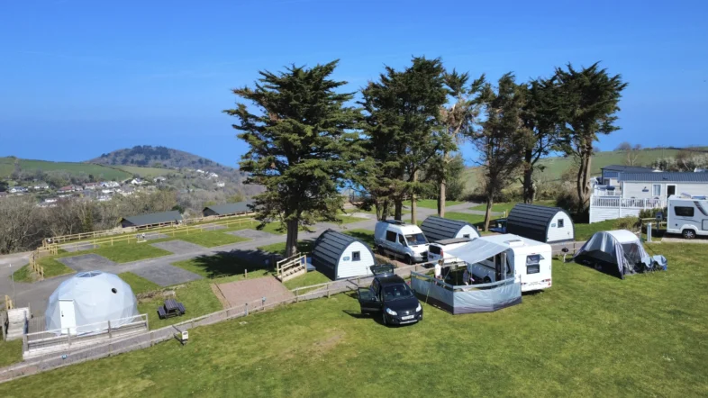 The retreat offers touring pitches for vans and motorhomes, tent sites, glamping pods, and lodges with panoramas over surrounding hills. It’s ideal for those wanting to explore, then return to a peaceful site at night.