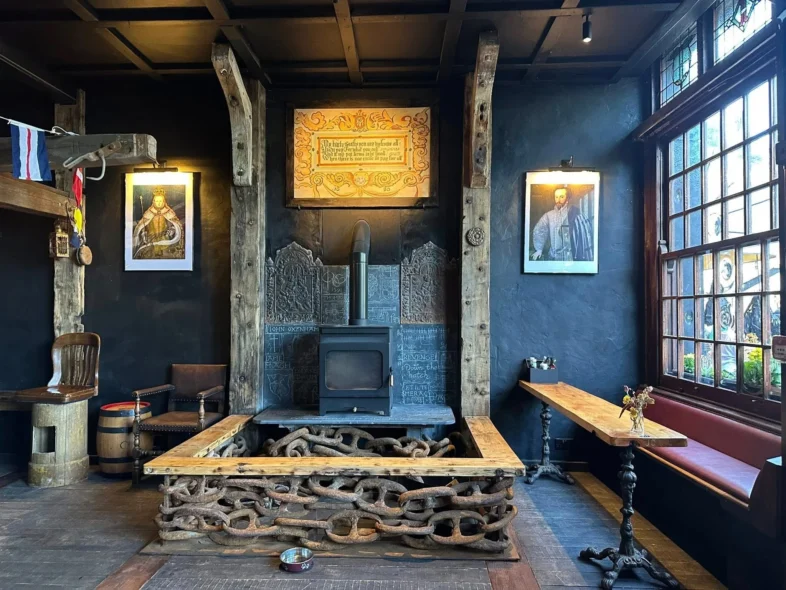 The ancient mariner stands as one of Exmoor’s most eccentric pubs. Step inside to discover an eclectic mix of nautical oddities – a full-size World War II torpedo, an octopus sculpture twisting from the ceiling, dark wood panelling evoking ship bulkheads.